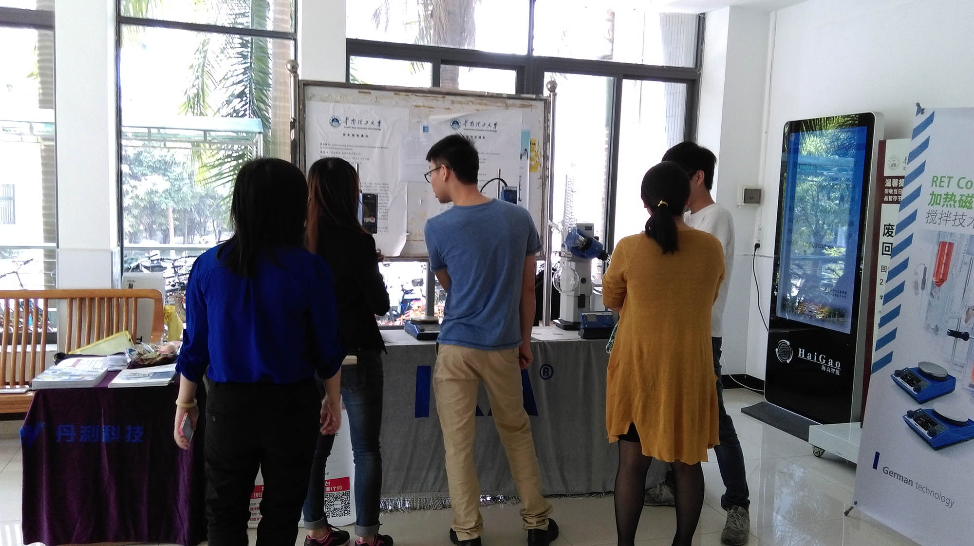 3月26日與4月16日我們分別在中山大學(xué)豐盛堂A106和華南理工大學(xué)唯美樓大堂舉辦了“丹利服務(wù)月,設(shè)備現(xiàn)場維護(hù)—校園行”活動,為吸引高校的老師學(xué)生來參加活動,當(dāng)天我們提供儀器的免費(fèi)維護(hù),并給在當(dāng)天下單的客戶優(yōu)惠政策。我們在活動前一周就已在校園的各實(shí)驗(yàn)樓張貼好海報,派專門人員去各樓實(shí)驗(yàn)室發(fā)放活動宣傳單,并登記好需要維護(hù)的設(shè)備型號。